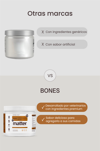 Tu compañero merece seguir moviéndose con la misma alegría de siempre. Bones es un suplemento en polvo sabor res, diseñado para cuidar sus articulaciones, proteger su movilidad.